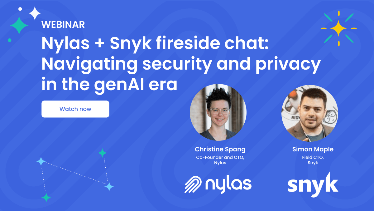 Join Nylas CTO and Snyk CTO’s as they chart a path toward harnessing AI's vast potential while ensuring a safer digital landscape for all: